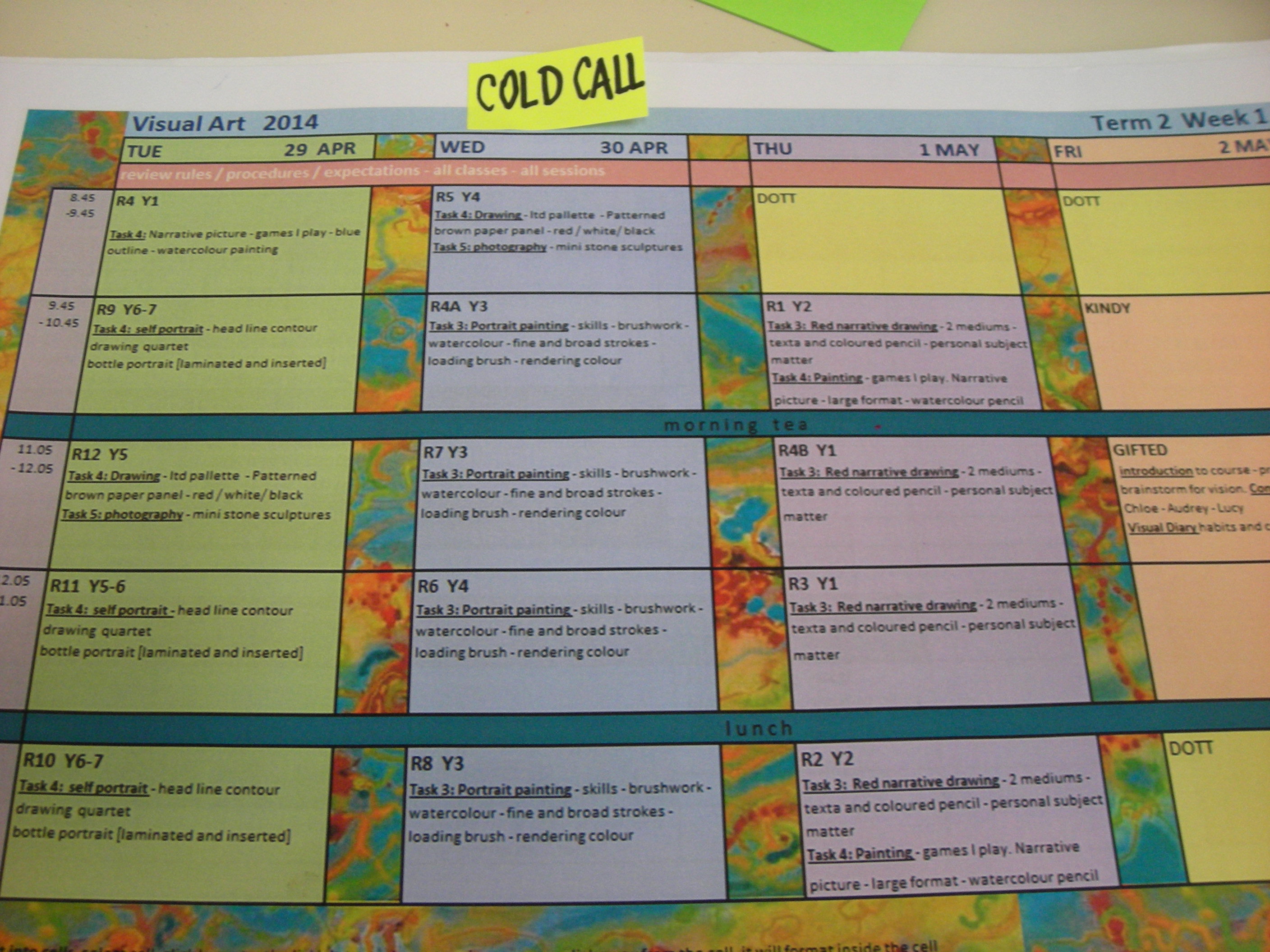 She shared the attached picture.  Yvonne continued: I also should say that I adapted this idea from a healthy eating plan called Change One that I used over 3 years to do a Food Renovation in my life. I was reflecting on my success in this area and wondered if this terrific principle would work in my Art Teaching – it was a worthwhile piece of knowledge to transfer!!