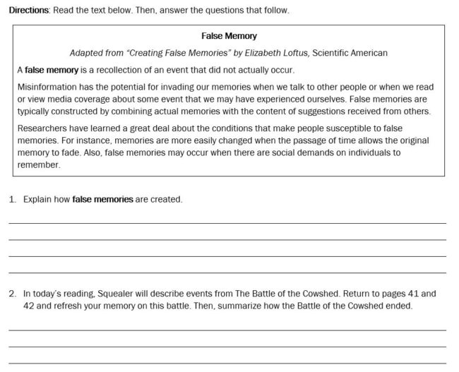 She sets up the discussion in the Do Now by asking students to read a short nonfiction article on false memories. Here’s what that looks like:
