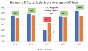 In Winter 2023-2024, we published a 4-part blog series (Part 1, Part 2, Part 3, Part 4) to share lessons learned from our 30-month partnership with Harmony Public Schools that had concluded that fall. In the opening of the first post in the series, we shared this data: