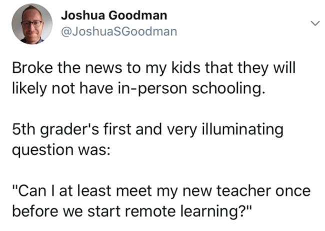 I thought of that when I read a tweet by the economist Joshua Goodman a few days ago.