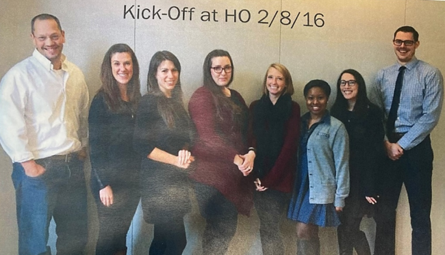 Cohort 1 Fellows with Doug Lemov, from left to right: Jen Rugani, Gabby Woolf, Sarah Fischler, MK Pope, Brittany Rumph, Kirby Jarrell, Eric Snider